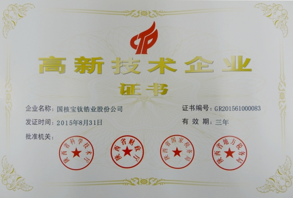 國核鋯業(yè)鈦及鈦合金加工產(chǎn)品生產(chǎn)許可資格