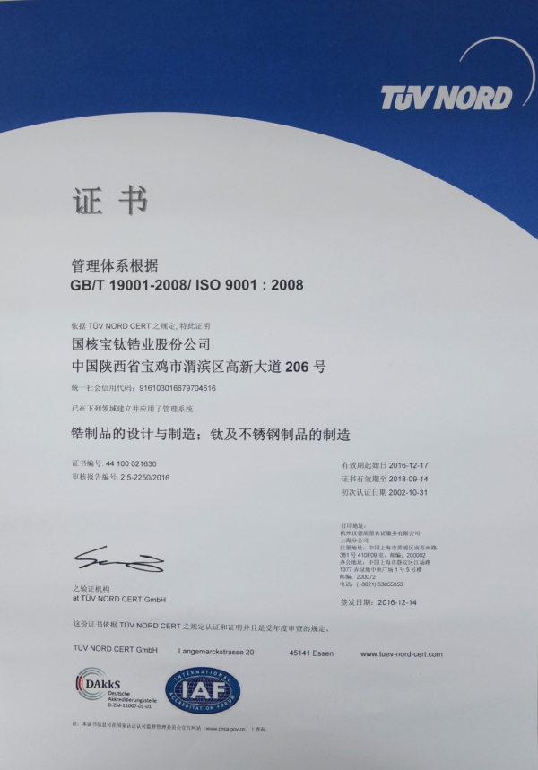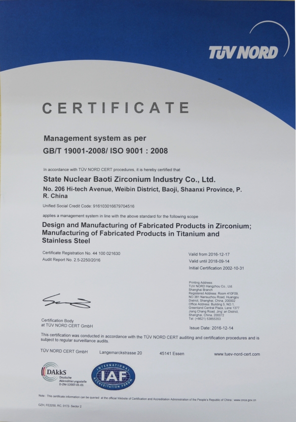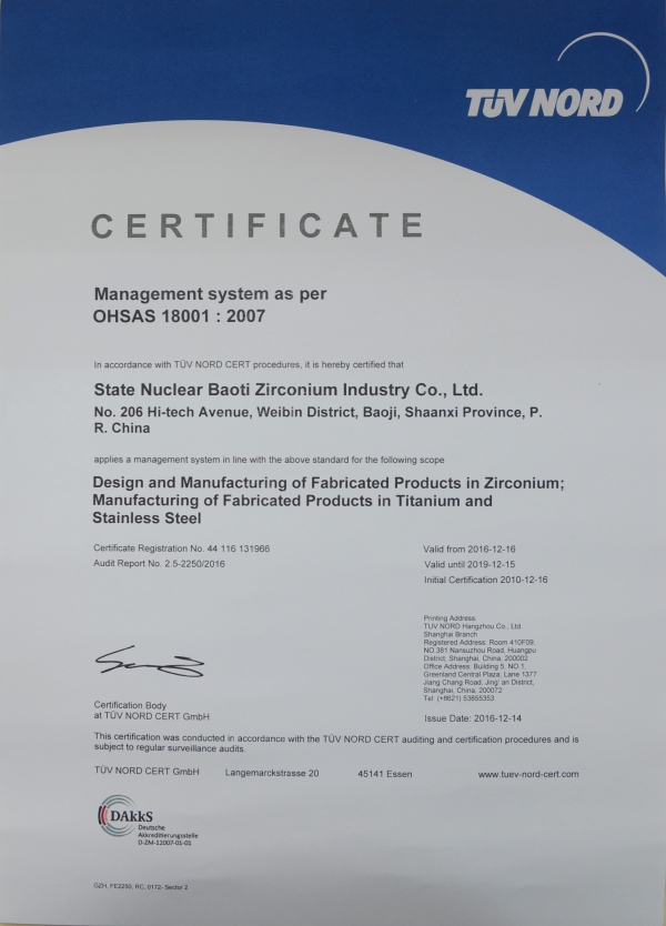 [上一頁] 國核鋯業所屬西北鋯管有限責任公司獲得..