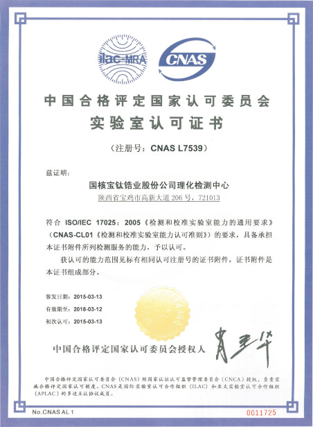 國(guó)核鋯業(yè)獲得“中國(guó)合格評(píng)定國(guó)家認(rèn)可委員會(huì)(CNAS)實(shí)驗(yàn)室認(rèn)可證書(shū)”