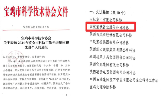 3月5日,寶雞市科學技術協會八屆三次全委(擴大)會議順利召開,公司科學技術協會榮獲市科協2024年度先進集體。