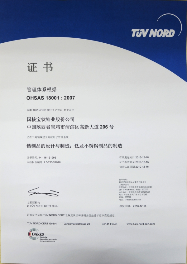 國核鋯業鈦及鈦合金加工產品生產許可資格